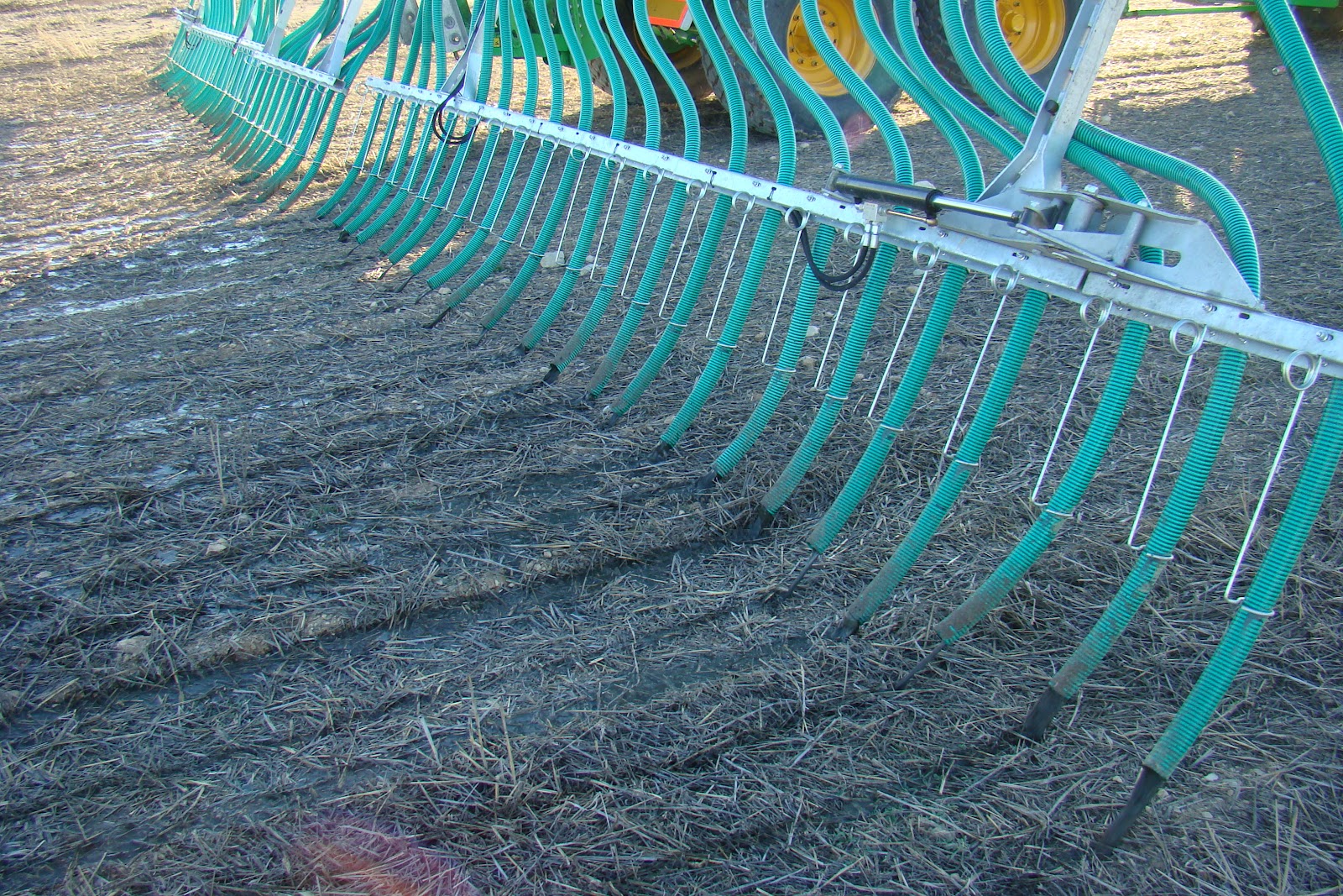 Antes de este proceso contactamos con las explotaciones ganaderas y analizamos el purín para conocer su contenido en nitrógeno. Una vez conocido este dato se calculan los metros cúbicos que se pueden aplicar por hectárea en función del cultivo al que va destinado y cumpliendo con la normativa vigente. Los equipos de aplicación disponen de un ordenador al que indican la dosis de metros cúbicos por hectárea que se desean aplicar al terreno. Dicha dosis se suministra por medio de un sistema de rampa de tubos colgantes, 60 tubos que reparten el purín de forma homogénea sobre la superficie del terreno, junto con un caudalímetro dosificador, que en función de la velocidad del tractor ajusta la dosis por hectárea a aplicar por nuestros equipos.